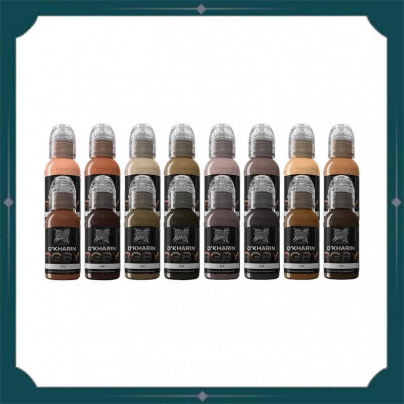 Ce kit comprend la gamme complète de sous-ton rouge, vert, bleu et jaune pour des tatouages de style réalisme afin de créer des tons de peaux.